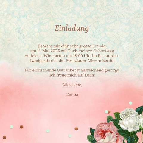 Romantische Geburtstageinladung Mit Wilden Rosen